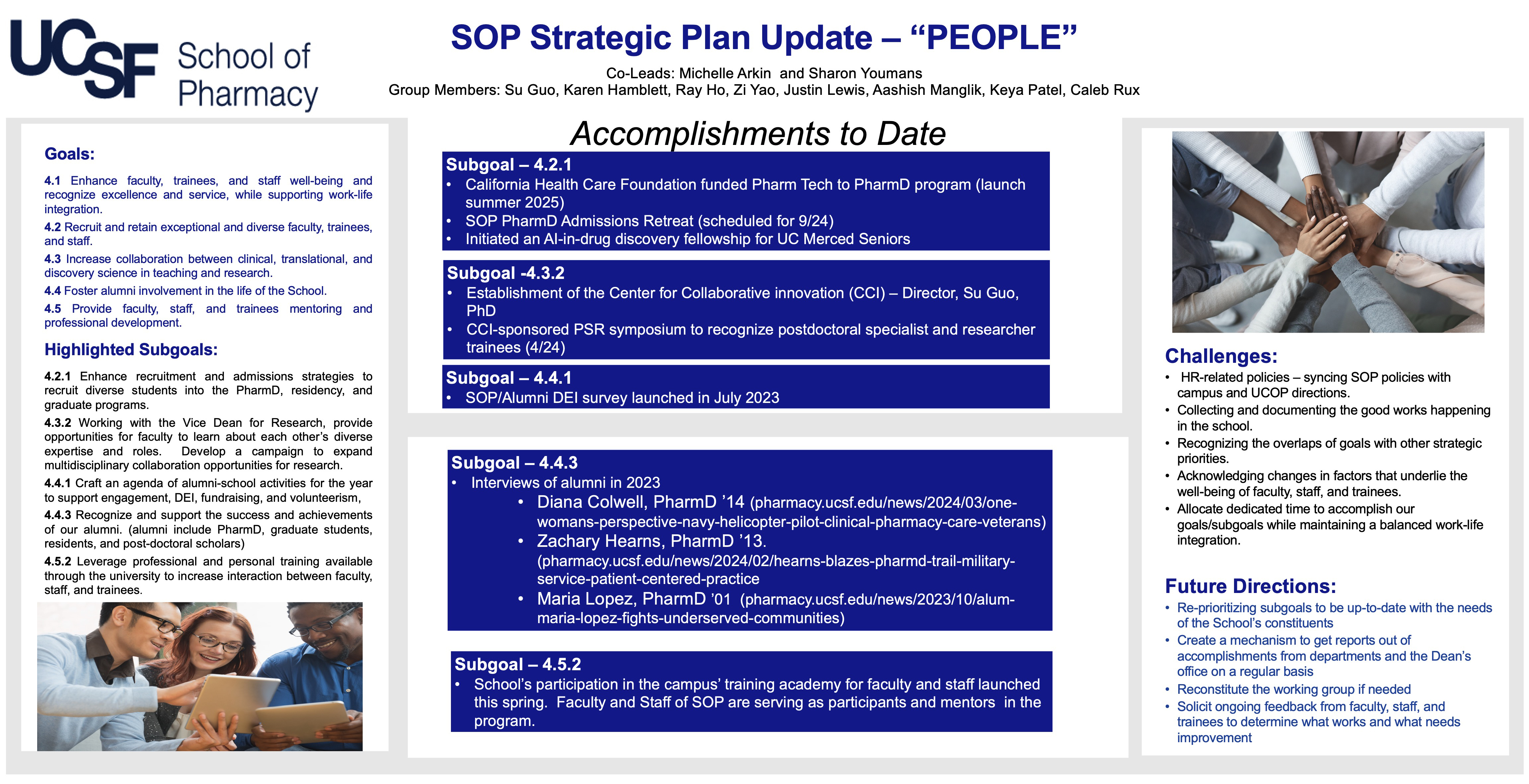 - Craft an agenda of alumni-school activities for the year to support engagement, DEI, fundraising and volunteerism. Alumni include PharmDs, graduate students, residents, and postdoctoral scholars.