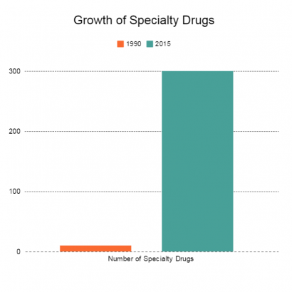 There were ten specialty drugs on the market in 1990 and nearly 300 in 2015, according to the American Journal of Managed Care.