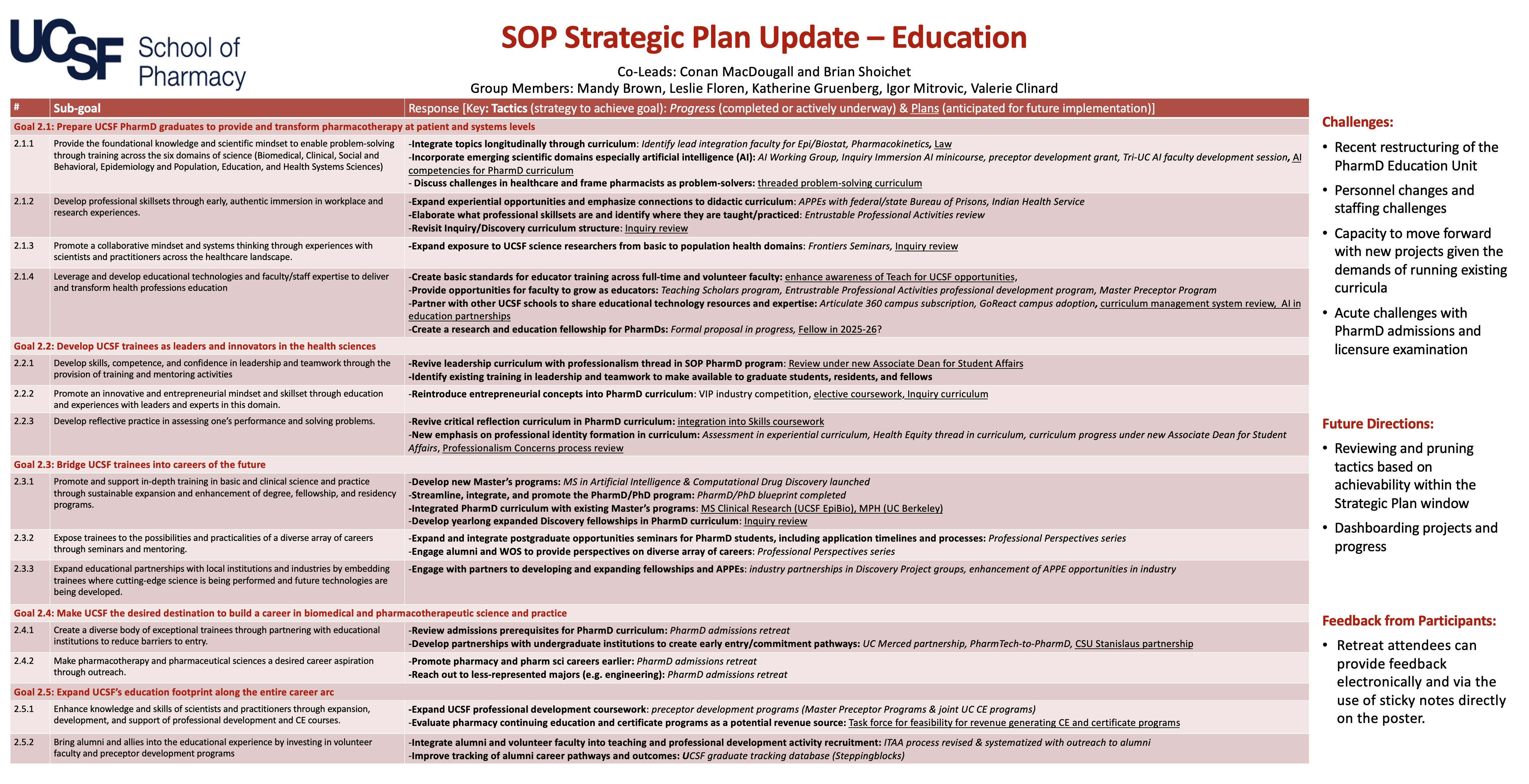 2.4 Make UCSF the desired destination to build a career in biomedical and pharmacotherapeutic science and practice